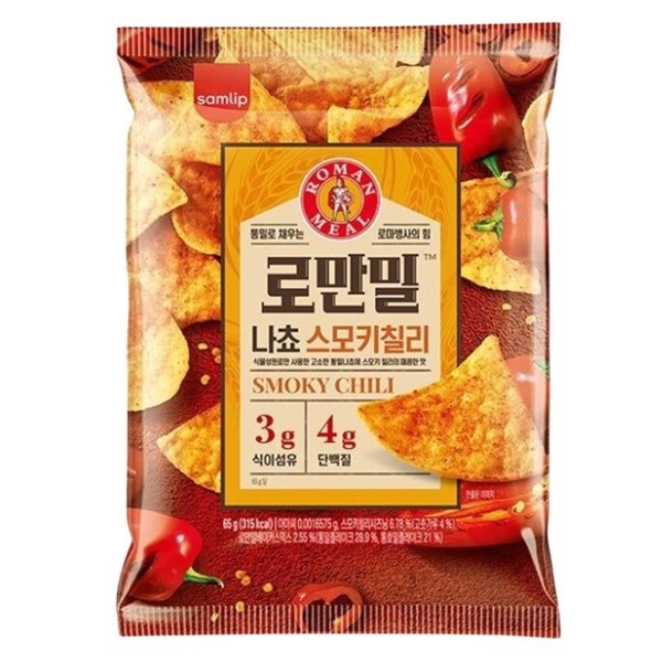 Snack nacho Samlip Roman Meal vị ớt hun khối 65g - gói